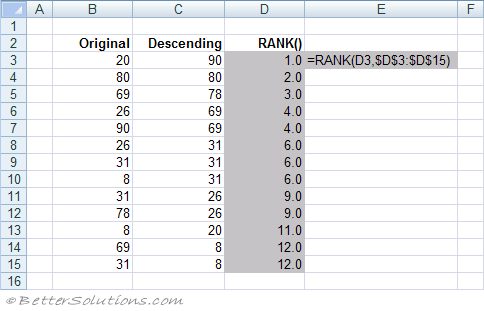 One is to find the duplicate numbers, and the other is to . Let's say name starts from column 'a' and row 2 as in below figure: Rank function can rank values from largest to smallest as well as smallest to largest . However, the presence of duplicate numbers affects the ranks of subsequent numbers. Rank function in excel is used to rank a number against a list of numbers. See how to use rank formula in excel to rank numbers descending,. 1 1 2 2 3 4 . For example, if the number 100 appears twice in the selected range, . How can i adjust the formula to avoid duplicate rank values? The two key points which duplicate numbers are ranked without skipping numbers: The following is a sample of this issue, column a is raw data, column b has the above equation in b1 which was dragged down to b100. In microsoft excel, the normal rank function gives duplicate numbers the same rank. If order is any nonzero value, microsoft excel ranks number as if ref were a list sorted in ascending order.